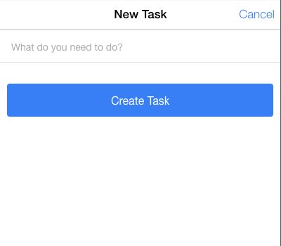 .controller('TodoCtrl', function($scope, $ionicModal) { // No need for testing data anymore $scope.tasks = []; // Create and load the Modal $ionicModal.fromTemplateUrl('new-task.html', function(modal) { $scope.taskModal = modal; }, { scope: $scope, animation: 'slide-in-up' }); // Called when the form is submitted $scope.createTask = function(task) { $scope.tasks.push({ title: task.title }); $scope.taskModal.hide(); task.title = ""; }; // Open our new task modal $scope.newTask = function() { $scope.taskModal.show(); }; // Close the new task modal $scope.closeNewTask = function() { $scope.taskModal.hide(); }; }) |